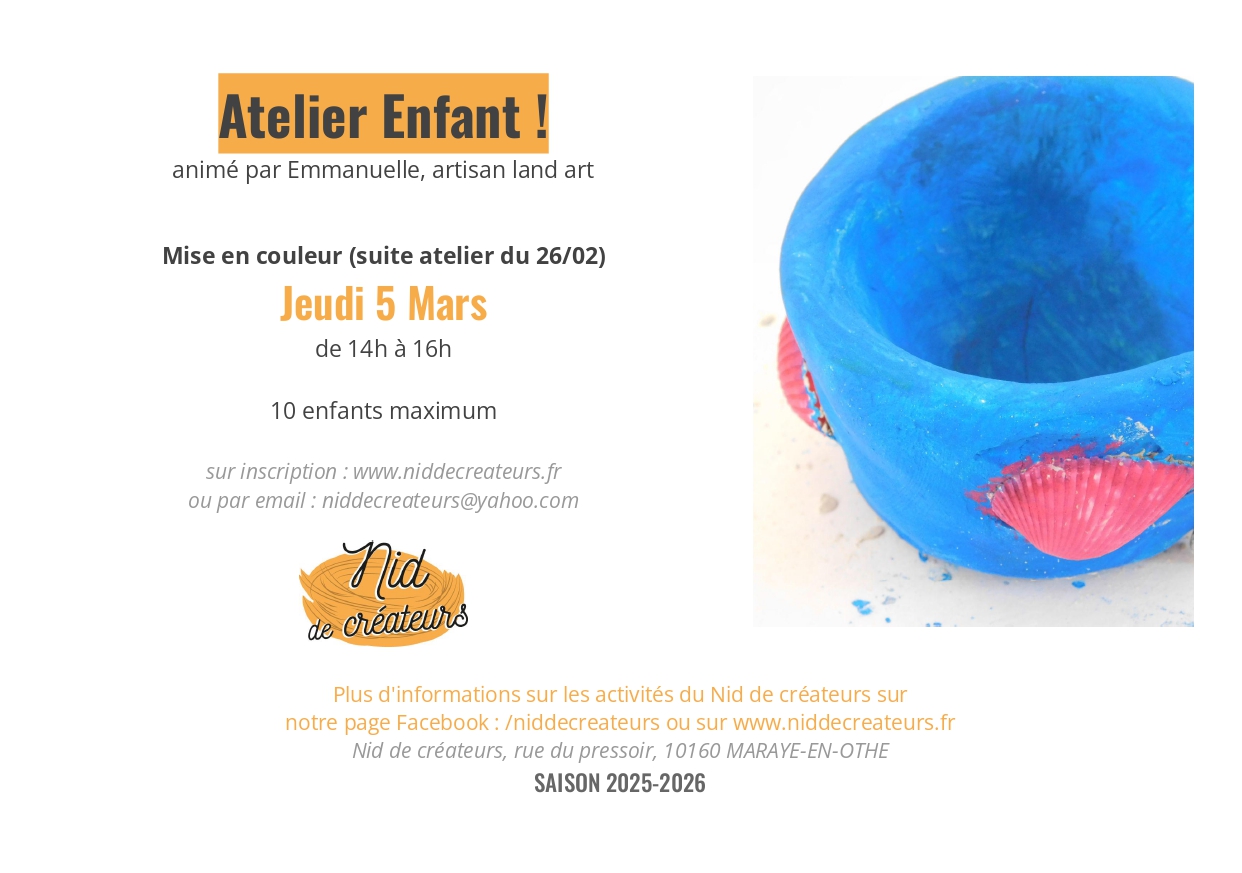 Tarif de l’atelier enfant : 11€*
