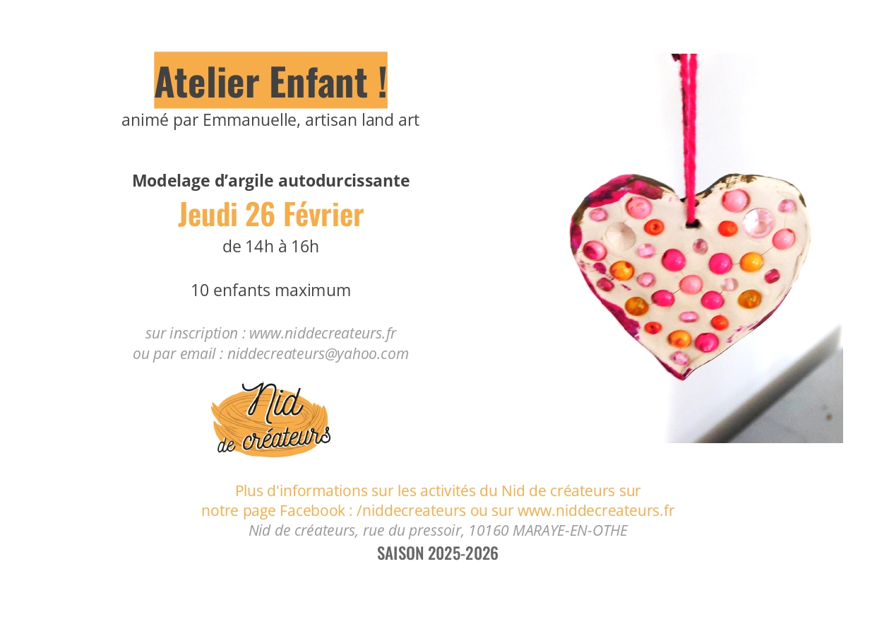 Tarif de l’atelier enfant : 15€*