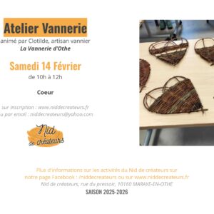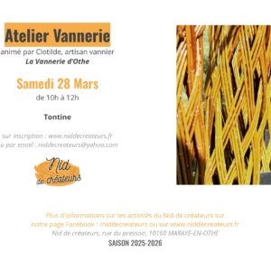Animé par Clotilde, artisan vannier, la vannerie d'Othe. À travers cet atelier, vous découvrirez l'univers de la ...