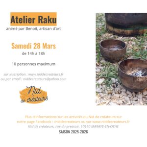 Animé par Benoit, artisan d’art Technique de cuisson d’un émaillage sur poterie, par choc thermique Vous repartez avec ...