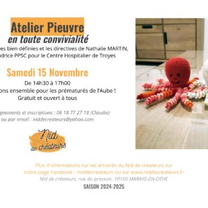 Après-midi pieuvre en crochet/tricot.De 14h30 à 17h, Nathalie Martin, ambassadrice PPSC* pour le Centre Hospitalier de ...
