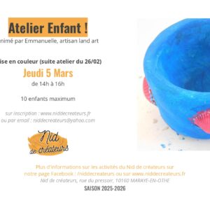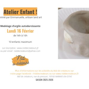 Animé par Emmanuelle, artisan land art Modelage enfant avec de la pâte autodurcissante De 14h à 16h, pour ...
